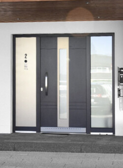 Neben Form, Material und Design prägt die Farbgebung das individuelle Gesicht einer Tür. Auch klassische Haustürfüllungen mögen es farbig und genießen durch optisch betonte Details besondere Aufmerksamkeit. So wie hier das Modell 214-25 mit weiß abgesetzter Ornamentik, das dem Wunsch nach einer stilvollen und landschaftstypischen Eingangsgestaltung entspricht.